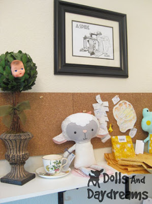And my cork board which is so handy for ideas and keeping track of my doodled dollies was made yet again by my clever chap .... out of floor tiles! It's brilliant and I love my shelf too ... although it's almost full already!