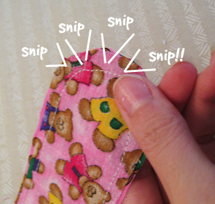 Don’t forget to clip your curves when making dolls and toys, this enables you to ‘pop’ the curves out. ... And cut your squared corners off :) Just don't cut through your stitches!