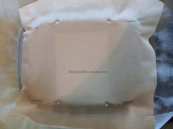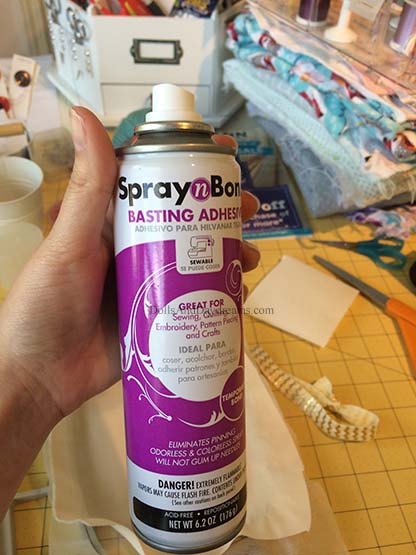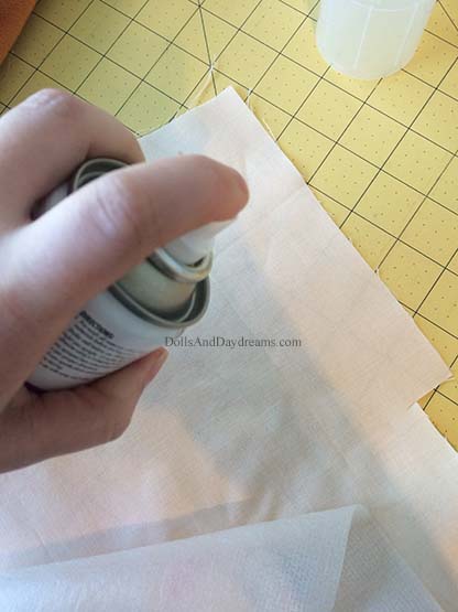 Spray a temporary adhesive to put down the face fabric on top of the Mesh Cutaway, smooth your fabric out really well and keep smoothing it as it stitches it in place.