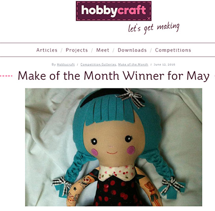 ★ Congratulations to Amanda! She won May's 'HobbyCraft' 'Make of the Month' using a DADD doll pattern! WOW! AND because she credited me - that means she get's A FREE Pattern from me also!!!! e-mail me at DollsAndDaydreams@gmail.com with your choice of pattern sweetie! We're so proud of you & your dolly!