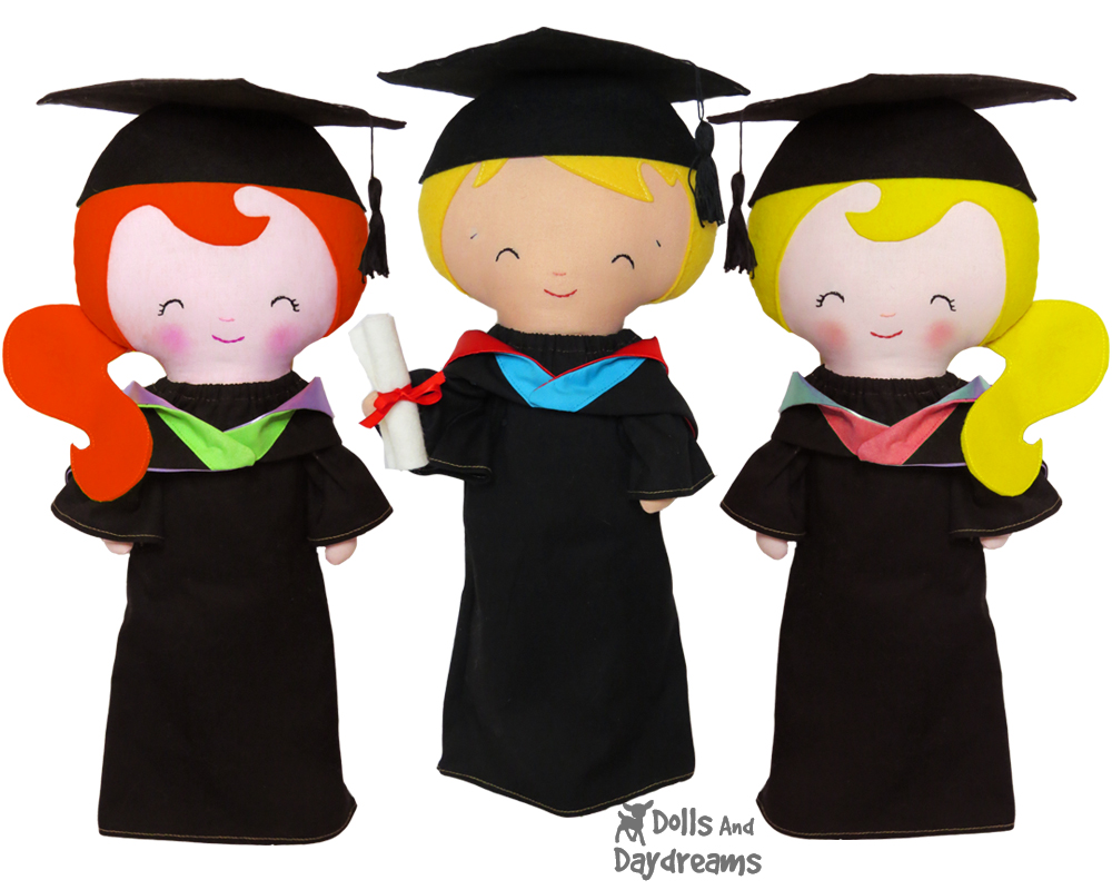 ★ Congratulations to all Graduates! ★ Whip up this ever so easy Graduation doll clothes sewing pattern Set - includes - Mortarboard (& Tassel), Gown, Cape & Degree Scroll! So super simple to Stitch!